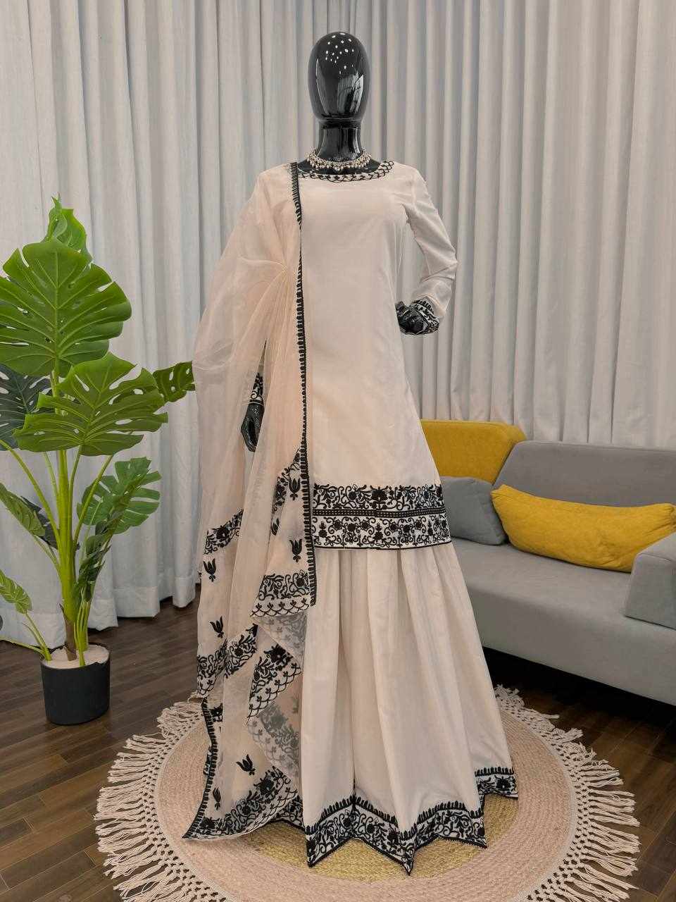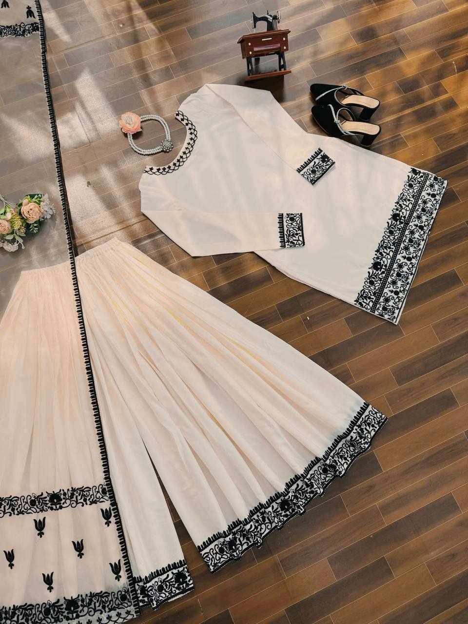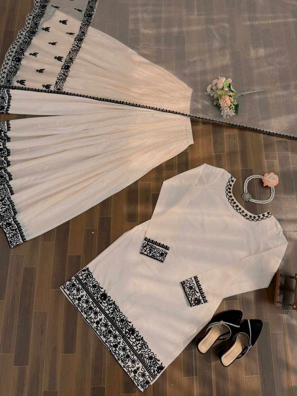 JKWH 997 Pure Fine Cotton Febric Embroidery Work A-line Kurti Set With Pocket