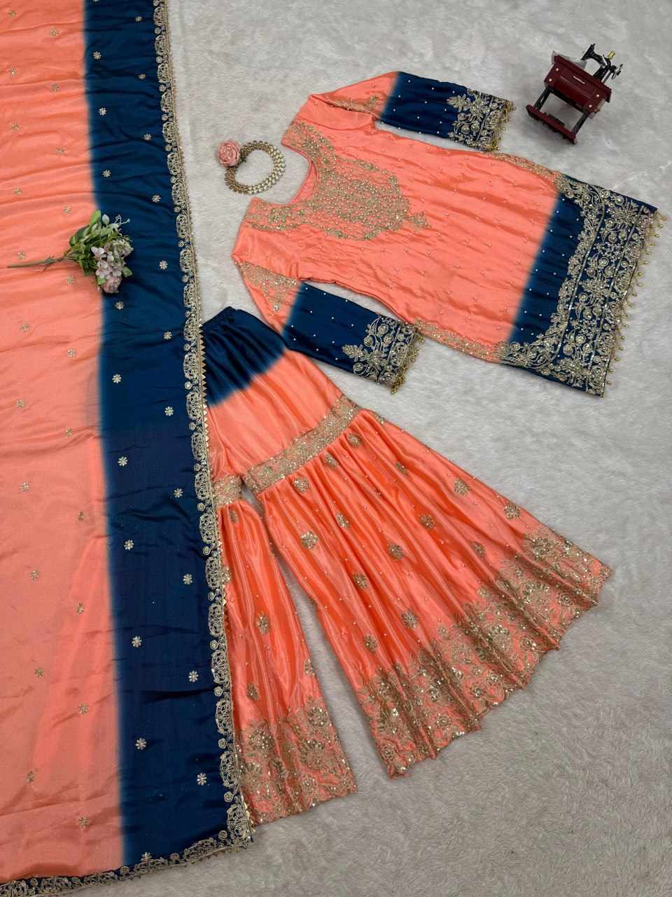 | Name : | KD 1498 Havy Chinon Orange Designer Suit |