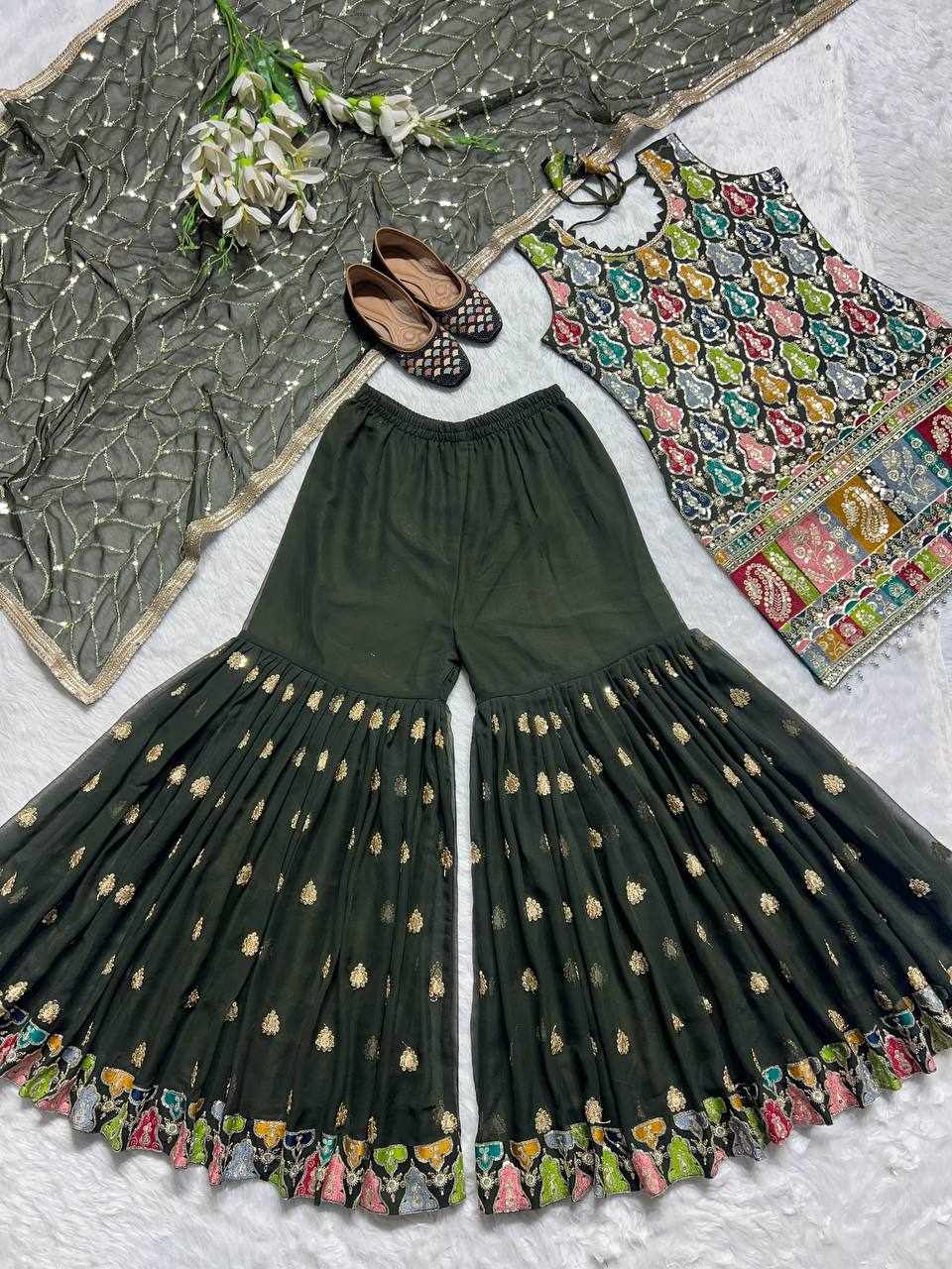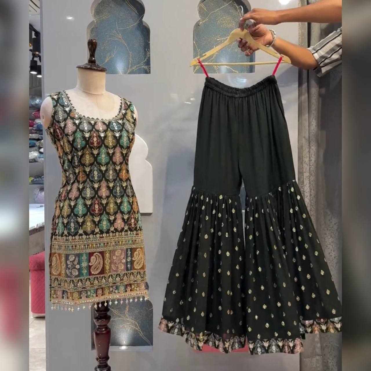 Plazzo Fabrics: Heavy Faux Georgette with 3mm Embroidery Sequence, Fully Flair