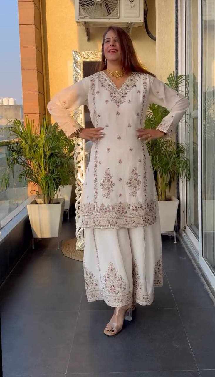 Plazzo Fabric: Pure Heavy Chinnon Silk with Heavy Embroidery Coding Sequence Work (Fully Stitched)