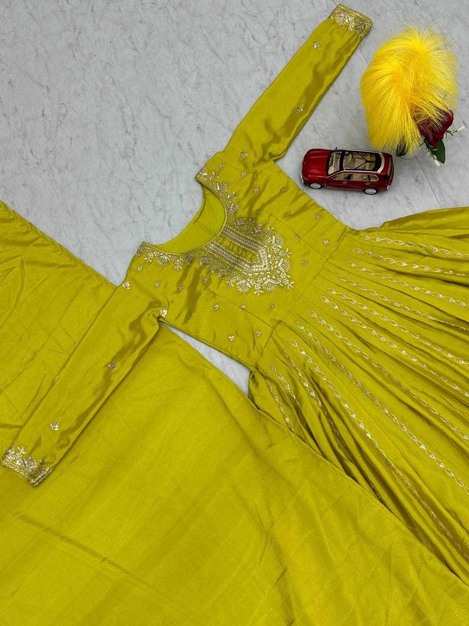 | Name : | Pc 435 Yellow Chinon Embroidery Sequence Gown |