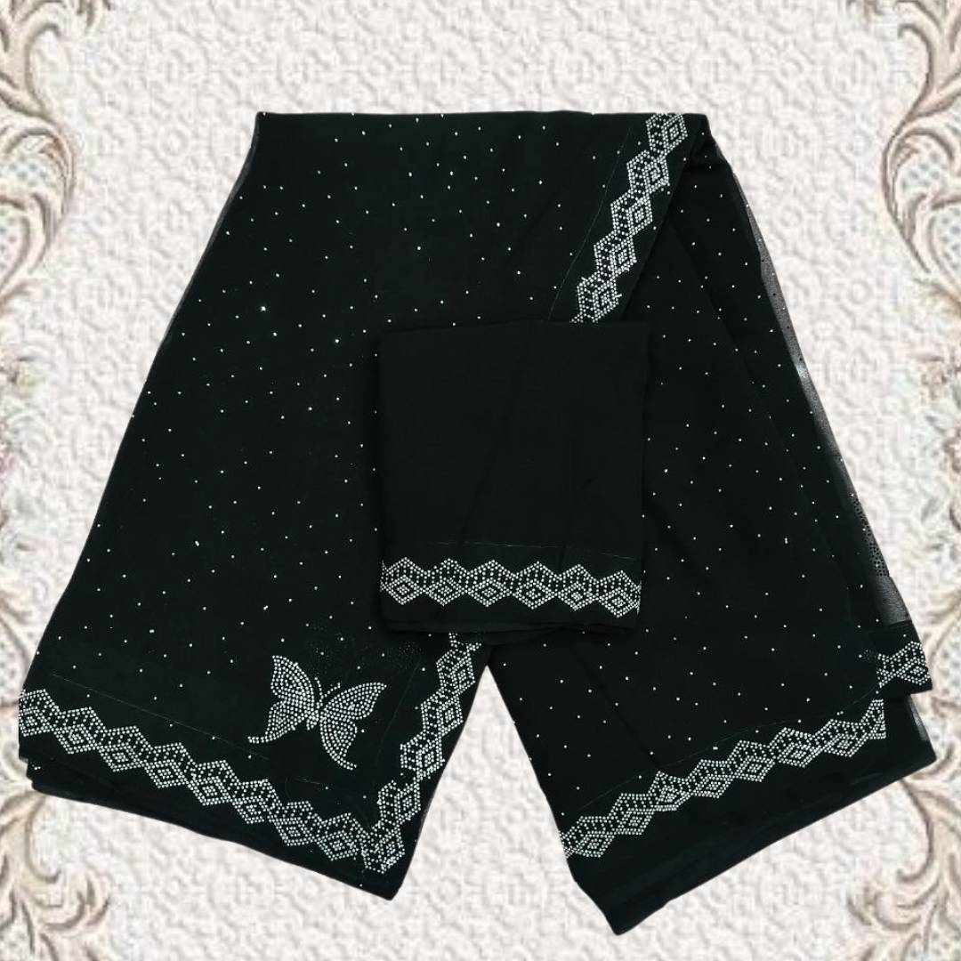 S4s Black Siroski Butterfly Stones Lace Georgette Party Wear Saree