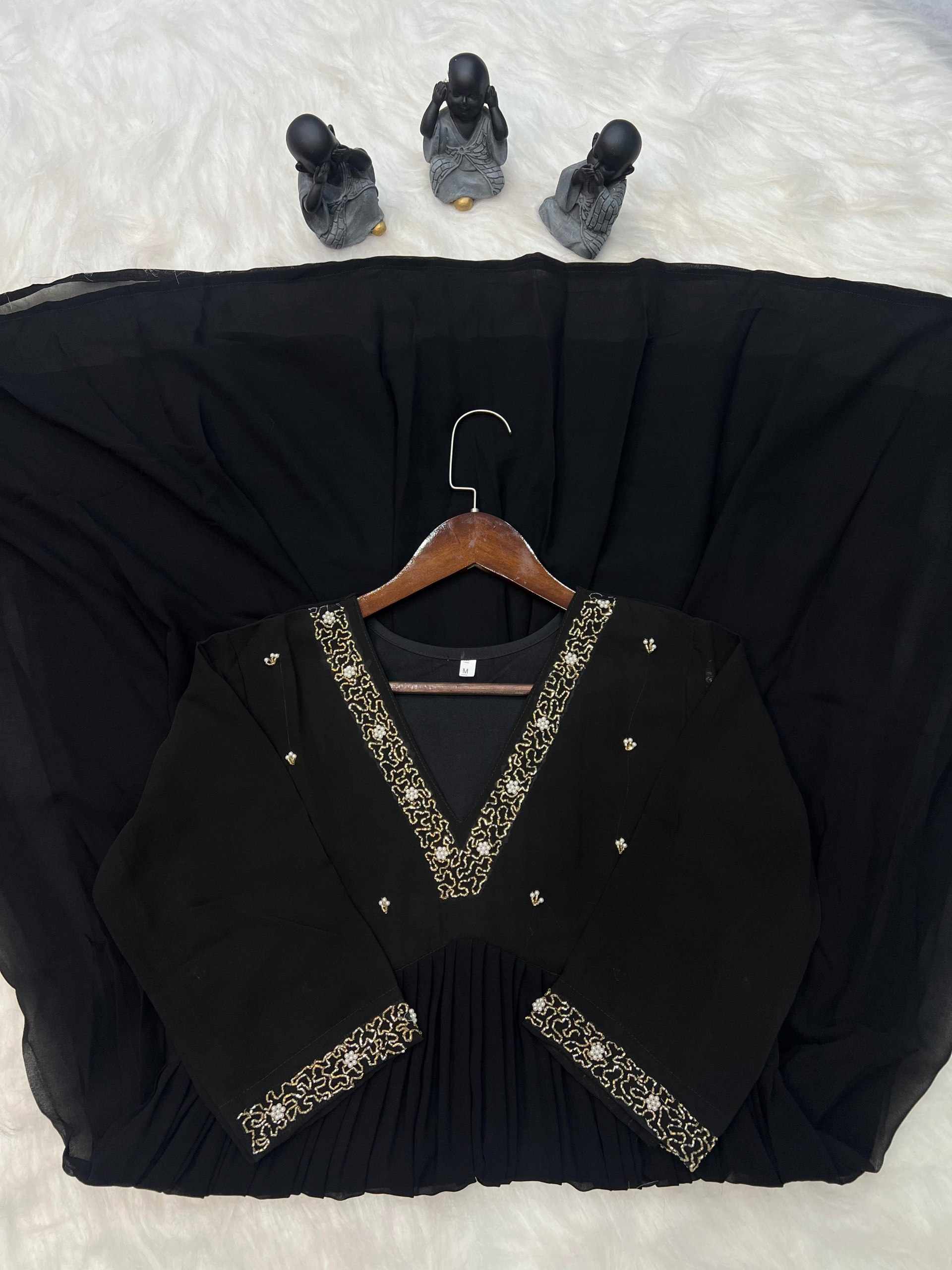 WM10 BLACK BLOOMING GEORGETTE HANDWORK KURTI